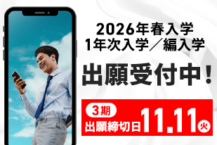 - 編入学資格の詳細はオンラインキャンパス「@CAMPUS(アット・キャンパス)」に登録して「入学要項」を確認ください。