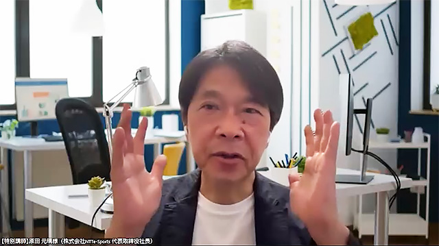 登壇したのは、株式会社NTTe-Sports 代表取締役社長の原田 元晴氏です。